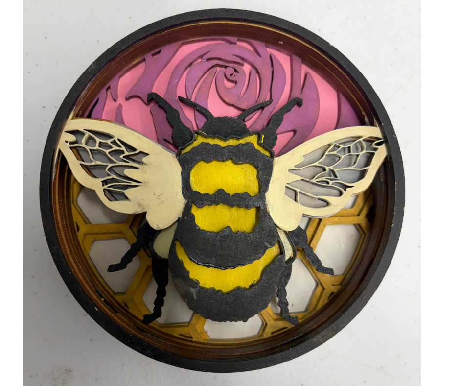 Celebrate the charm of nature with the Bee Happy  Shadow Box Kit, featuring a delightful bumblebee in intricate detail. A sweet and whimsical design, it’s ideal for garden lovers and creative minds.