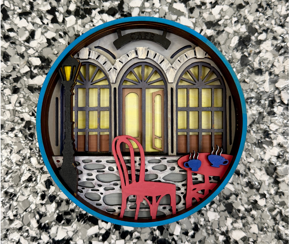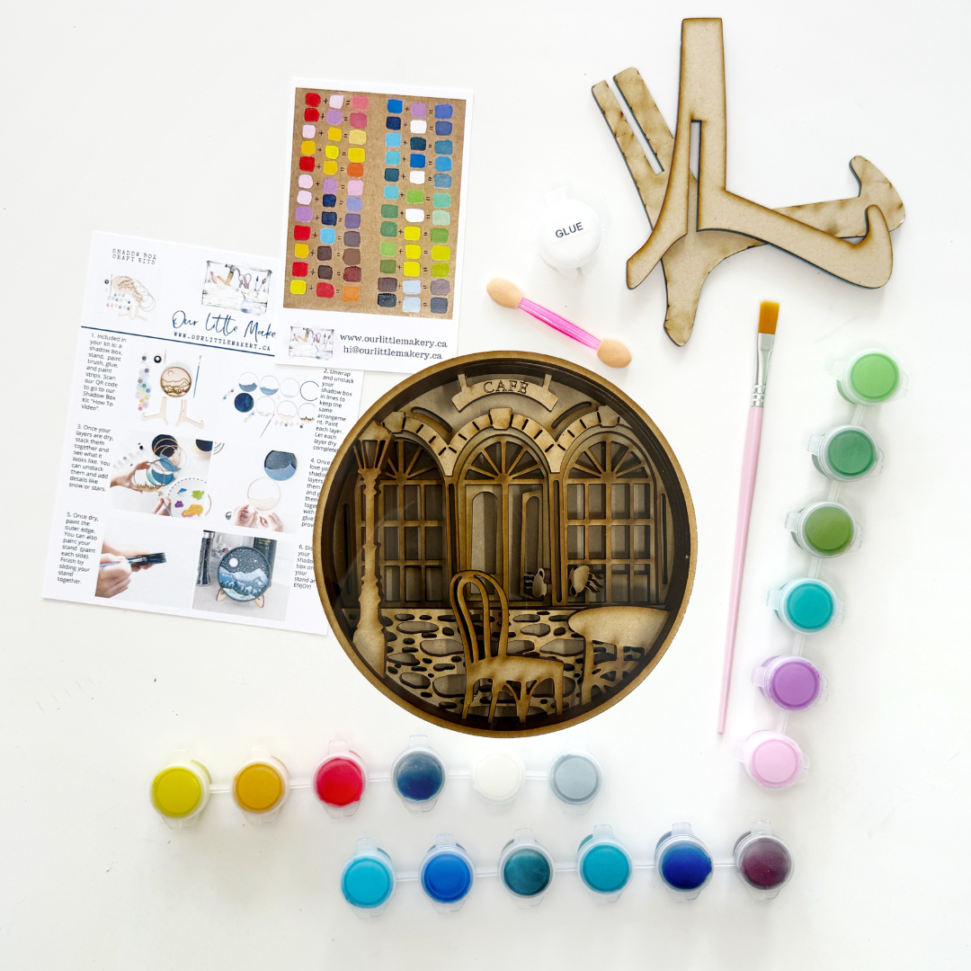 Dreaming about sipping on a warm cup of coffee on the streets of Paris? Well now you can bring that feeling home! The Parisienne Afternoon paint by layers kit is perfect for the travelers, featuring a grand station accompanied by a gorgeous cobblestone street, and the perfect place to pause for that cup of coffee.