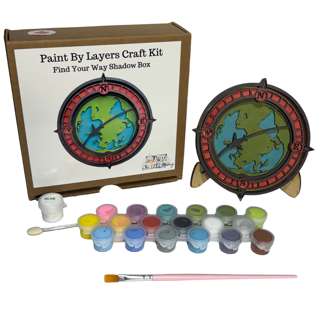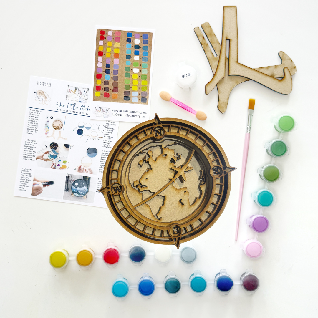 Create a stunning travel-inspired décor piece with this compass-shaped layered craft kit. Featuring vibrant land and sea details, a sleek airplane silhouette, and bold cardinal points, each pre-cut layer adds depth and dimension. Just paint, assemble, and enjoy a unique handmade artwork perfect for adventurers and explorers.