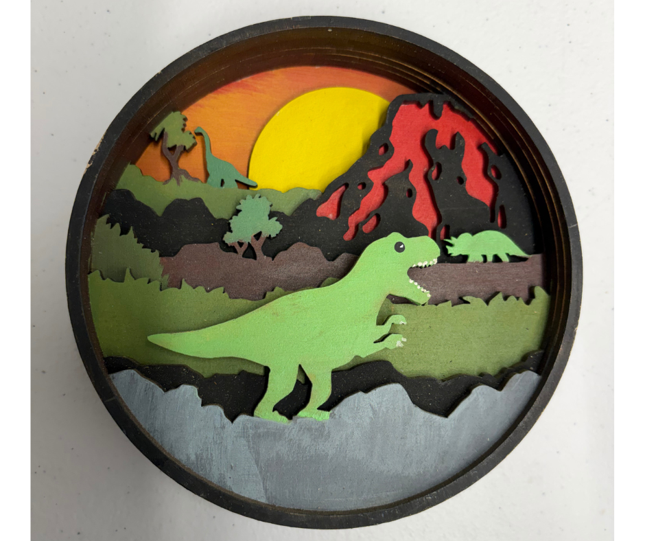 Step back in time with the Lava Lands Shadow Box Kit, a prehistoric scene where dinosaurs roam fiery volcanoes and lush landscapes. A bold and imaginative project full of ancient adventure and layered detail.