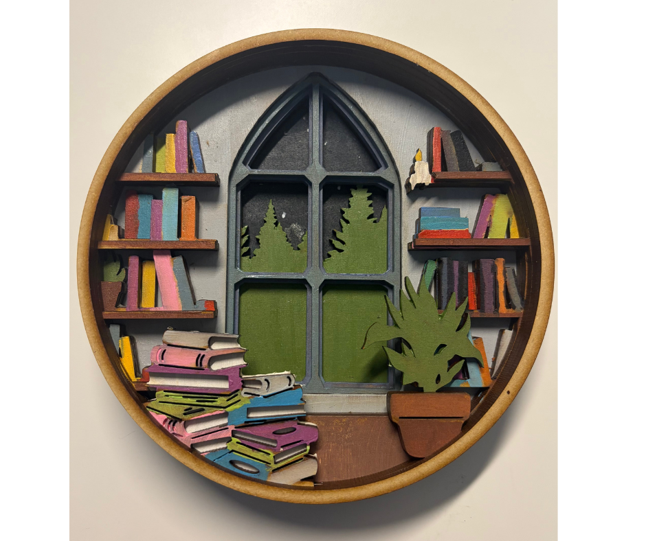 Cozy up with creativity using the My Little Book Nook Shadow Box Kit. This charming design features a peaceful reading corner filled with books, plants, and a window view of a forest. Perfect for book lovers and DIY fans, this kit makes a lovely handmade decoration or heartfelt gift. Relax, paint, and escape into your own little world.