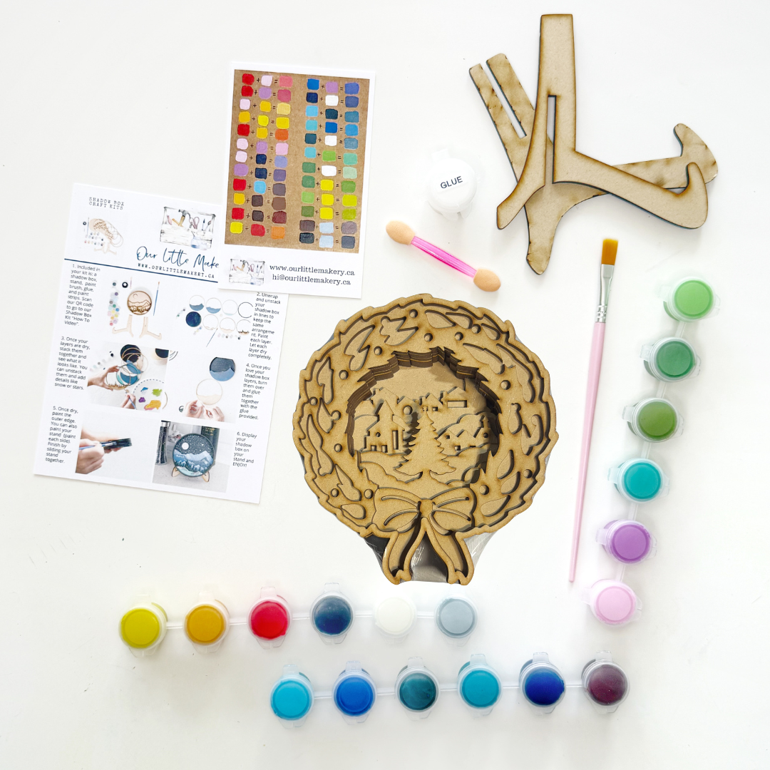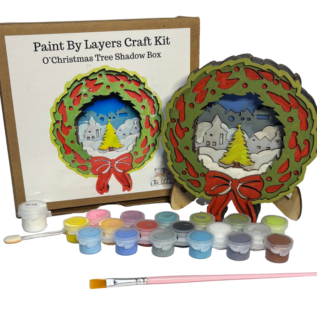 Add festive charm to your holiday décor with this O Christmas Tree Paint by Layers - Shadow Box Kit. Featuring a cozy winter scene framed by a holly wreath, each pre-cut piece builds a vibrant 3D Christmas tree centerpiece. Just paint, stack, and display for a heartwarming seasonal craft that’s merry and bright.