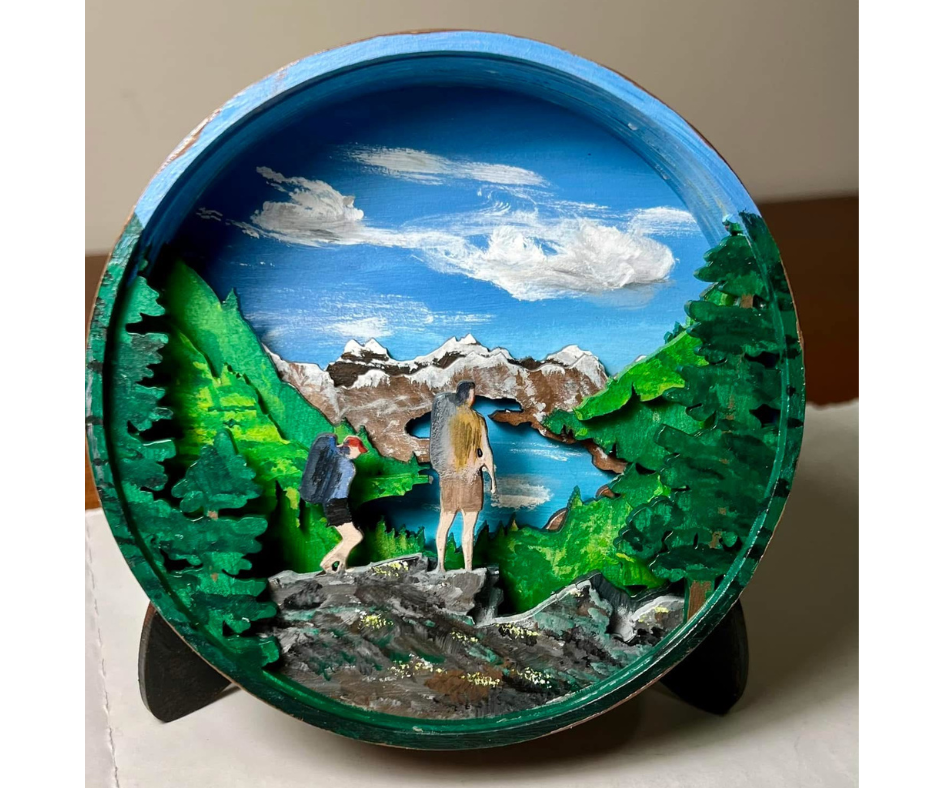 Adventure awaits in the The Lookout Shadow Box Kit, featuring two hikers gazing over a breathtaking mountain lake. A scenic, wanderlust-inspiring project for nature lovers and those who dream of the trail ahead.